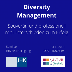 Sie verstehen, wie Unternehmenskultur und die Identität von Teams entstehen und funktionieren. Sie lernen zu erkennen, wo Diversität in Ihrem Berufsalltag und Ihrem Unternehmen eine Rolle spielt. Darüber hinaus werden Sie für die Gleichzeitigkeit von Wahrheiten sensibilisiert und erlangen einen souveränen, gelassenen Umgang mit Diversity.